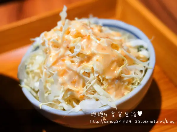 附餐的高麗菜絲,加了滿滿的胡麻醬汁,吃起來非常清爽,如果吃不夠還可以再續唷