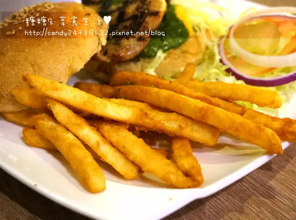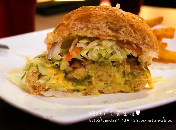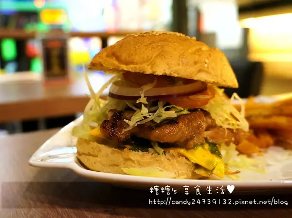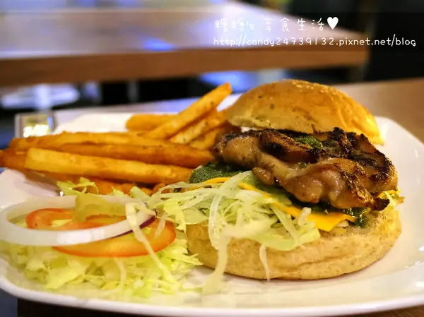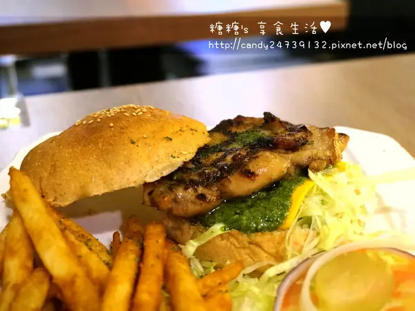 美式碳烤雞腿堡-青醬 195元 吃過無數次牛肉漢堡,比較少吃到雞腿漢堡,所以這次點了雞腿堡來試試看醬汁部分選了青醬,在外面比較好吃到搭配青醬的漢堡,感覺蠻特別的