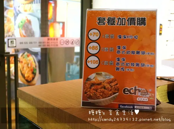 餐點部分也可以加價升級為套餐: +70元 A套餐 濃湯+沙拉+85元 B套餐 濃湯+泰式甜辣雞翅(半份)+105元 C套餐 濃湯+泰式甜辣雞翅(半份)+雞塊(半份) Menu