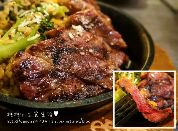將牛小排切成6小塊,讓顧客一上桌就可以直接享用,不需要再用刀叉在那邊切來切去外表炙燒成深褐色,內層粉嫩嫩的肉質,軟嫩多汁且不見血水,火侯控制的將將好 口感紮實,帶有些許咬勁,吃的到炙燒的香氣,不過糖糖覺得牛肉香倒是比較薄弱一些