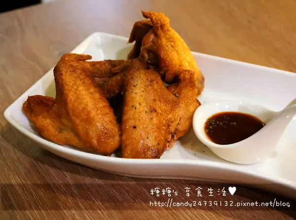 美式碳烤雞翅 130元 之前吃過泰式甜辣雞翅,平價還不錯,這次選了美式碳烤雞翅來試試,份量一樣是四隻雞翅先炸過後再做烘烤,有著碳烤的外表及香氣外,還多了炸過的爽脆滋味 肉質吃起來不乾柴,可惜沒有泰式炸雞來的多汁可口
