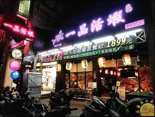 一品活蝦菜單 一品活蝦是全台唯一活蝦22吃,台中只有這一家分店。除了活蝦好吃之外,還有各種熱炒、鍋物、及私房料理也不錯,沒有低消規定也不限時,用餐加收10%服務費。