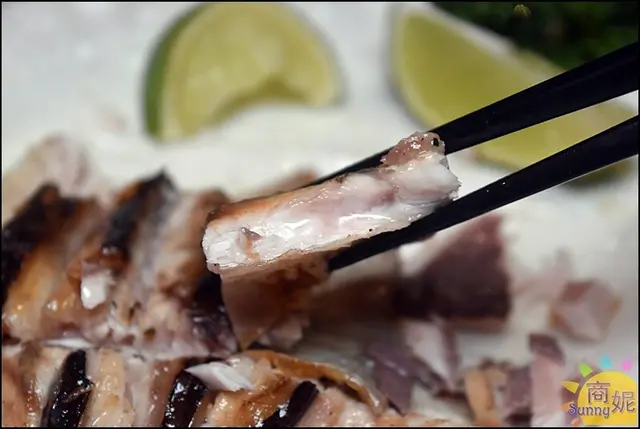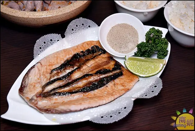 完全不必調味,烤過後擠點檸檬汁再沾點胡椒就很好吃。魚肚部位肉質細緻味道香甜,連小朋友都愛吃,很快就被吃光非常受歡迎。