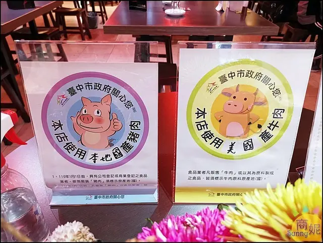 一品活蝦環境 走進店內,除了量體溫噴酒精之外,還有看到使用國產豬肉、美國牛的標示,使用台灣豬肉有加分。