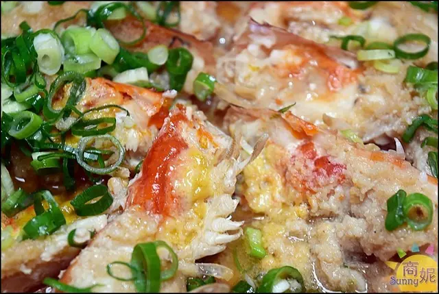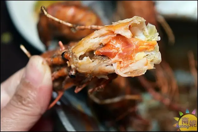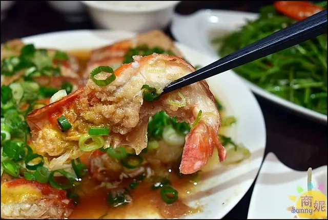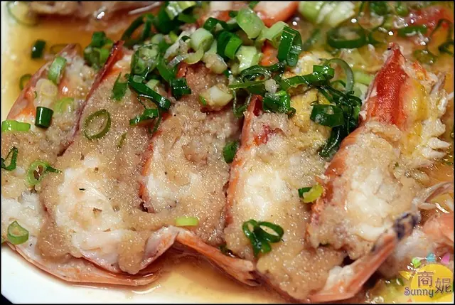 紅頭母蝦每一隻都有對切,鋪上滿滿的蒜蓉與特調醬汁清蒸,滿滿蒜香味道好甜喔。