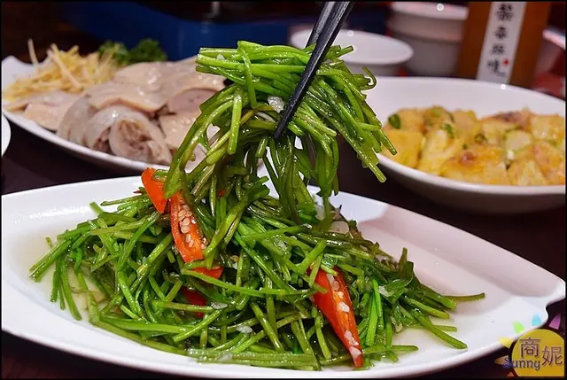 炒水蓮一大盤份量超多,口感爽脆加上辣椒一起炒非常好吃!我們上次吃過就很愛,這次再點炒水蓮一樣喜歡,吃不夠再加點也不貴,一大盤只要100元。