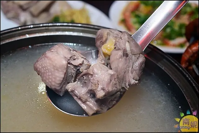 雞湯好大一鍋,裡頭雞肉不少,大塊厚實肉質Q彈結實好好吃喔。