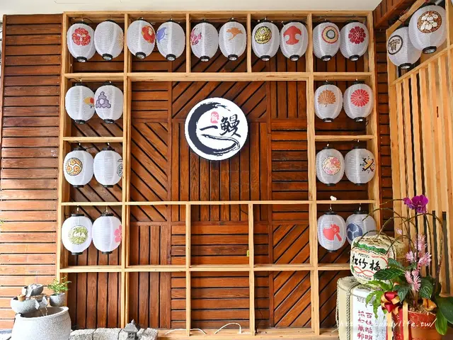 一鰻的裝潢充滿濃濃的日式風格,門口處還設置了一個打卡牆,不管是白天還是晚上拍照都很美