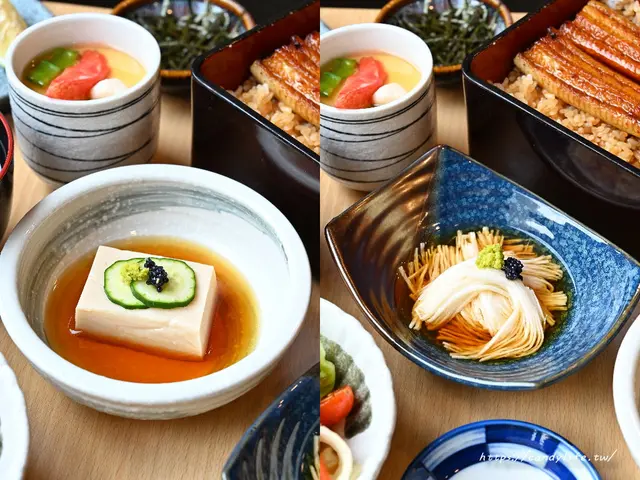 套餐系列的當日小缽依當天為主,糖糖今天吃到的當日小缽是手工胡麻豆腐,這裡的豆腐非一般豆腐,而是使用日本葛粉加上日本胡麻醬手工製成的,口感綿密,伴隨著濃郁的胡麻香氣,另外極上鰻魚飯套餐還會額外附上一道特色小菜,今日附上的特色小菜是手工山藥細麵,將山藥手工切成細麵的模樣,搭配特製醬汁,清爽又開胃