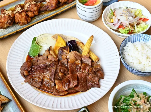 一鰻除了鰻魚飯及日本料理,還吃得到牛排,採用美國原塊肋眼牛,烤至七分熟後淋上帶點微甜的特製燒肉醬汁,軟嫩肉質帶微微嚼勁,建議大家要趁熱吃,冷掉流失水份容易讓肉質變乾,旁邊還有附上現烤時蔬可以搭配享用
