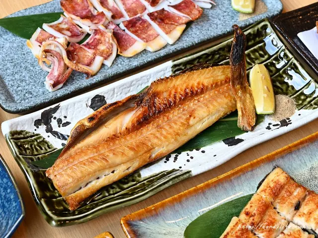 採用日本進口花魚,並以一夜乾方式製作,外皮烤至香脆口感,裡頭的肉質細嫩多汁,糖糖覺得不必再沾醬,單吃就非常夠味囉