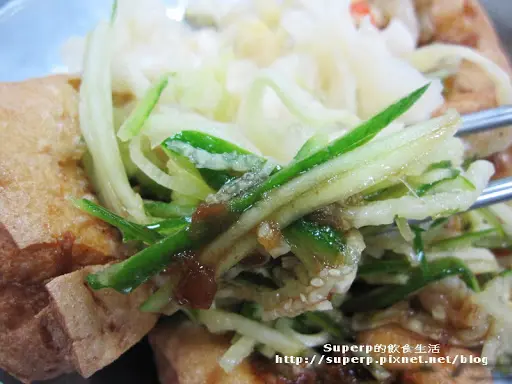 裡面還有脆脆的黃瓜絲,醃過的黃瓜絲讓這臭豆腐的味道和口感跟其他的臭豆腐變的截然不同。