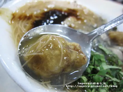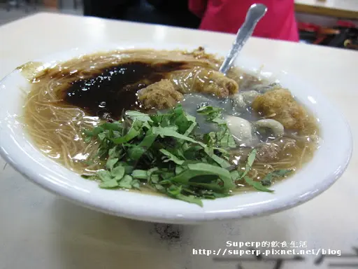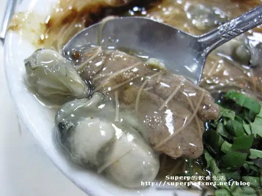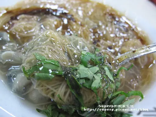 麵線上淋了沙茶口味的醬,而且灑了九層塔屑,很香,但總覺得吃起來沒有以前好吃,麵線稍微有點硬,而且湯頭有點還好而已。