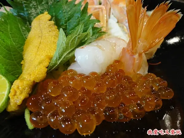 內容可說豐富無比:特選上綜合生魚片、磯煮鮑魚、加拿大海膽、日本生鮮干貝、鮭魚卵、松葉蟹肉、阿根廷天使紅蝦統統都在這丼飯裡頭