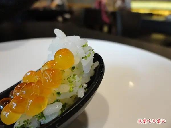就連下層的壽司飯撒海苔粉加鮭魚卵,鮭魚卵波滋波滋的在嘴裡彈開拌著飯咀嚼滑入喉嚨到食道,順口還很美味