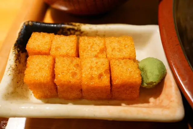 再配上超特別的醬油凍,放上去稍待醬油凍略略融化時,一口塞入,海綿口感化成醬油鹹味,口感很特別。