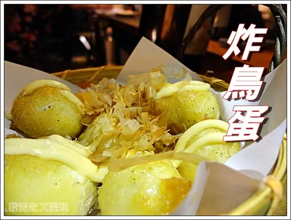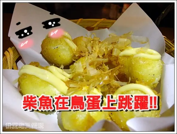 像吃章魚燒的方式,淋上美乃滋撒上柴魚片,送上來的那一刻~柴魚片還在熱騰騰的鳥蛋上動