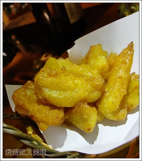 炸過的杏鮑菇像立即被鎖住水份一樣,不像烤的杏鮑菇會烤乾掉沒水份,一口咬下的時候杏鮑菇都與裹粉的外皮分離了~(這是人家說的油水分離嗎?)