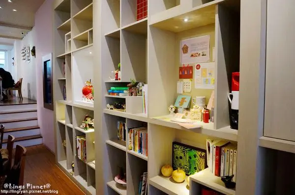 都說了是雜貨風了,免不了一些小雜物與原木書櫃,搭配上各式書籍,