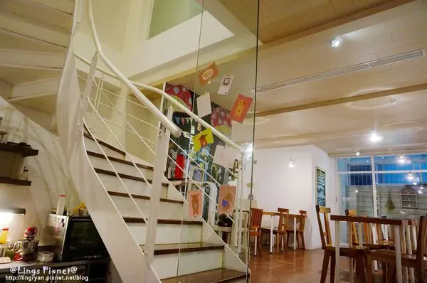 樓梯的另一側是另一邊的用餐區,雖然溫馨但感覺空間還是稍微擠了些。