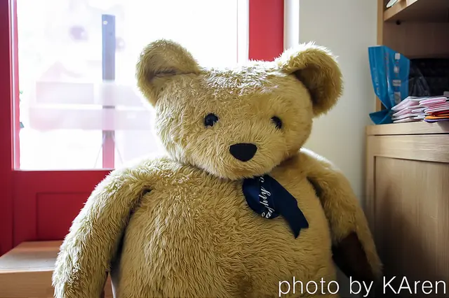雖然已經有店貓駐店,店裡還是放了隻大熊