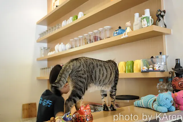 貓貓偶爾會這樣跳上桌,客人的桌子也會跳
