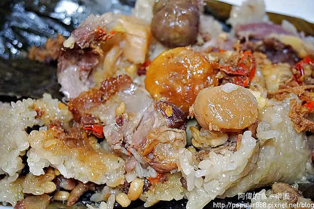 這顆也是阿偉很期待的,一打開粽葉有聞到一點辛香氣,沒錯,它有一點辣,不過倒是可以接受的辣度