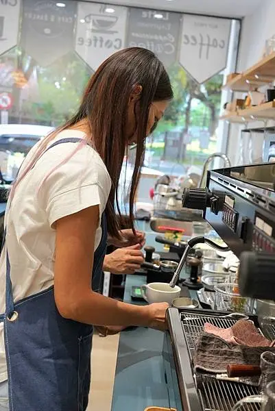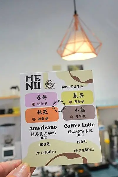 在等待老爺拍照過程中,梅子好奇詢問了一下店家當初經營的初衷,原來是老闆太喜歡公園旁的環境,加上一直以來對咖啡和烘豆的熱愛決定想做一間有別於多數咖啡店僅提供單款配方豆的選項;想讓消費者味蕾可以有更多體驗因而選用四款單品豆做SOE,以內用的品質出杯,但卻是外帶的價格就可以享用到。