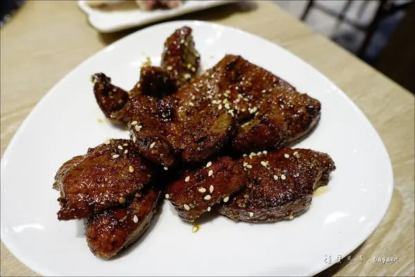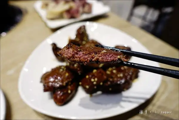 吃起來外皮帶點酥,咬開來可見粉嫩的牛肝,無腥味,搭配上頭的鹹香醬汁更加好入口。