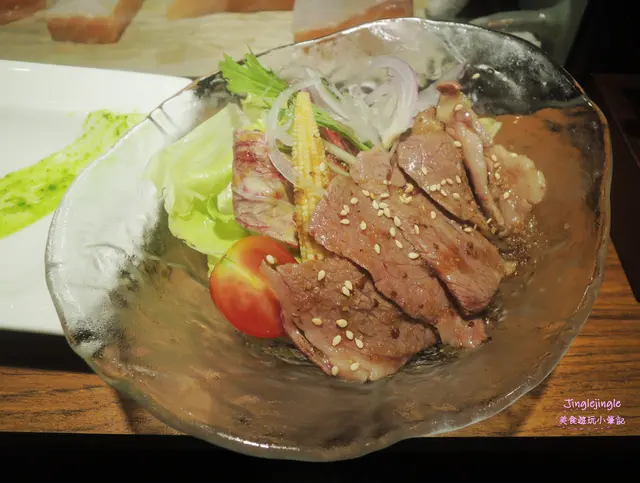 牛小排厚度不是重點,帶有些許的粉嫩色澤、紋理分明帶有少許油花