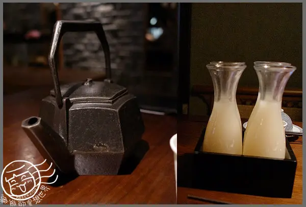 桌上的高湯瓶,嗯...來讓我乾了它吧(北七嗎?),要喝就喝那鐵鑄壺中的養生茶吧(齁~真的好沉啊)。