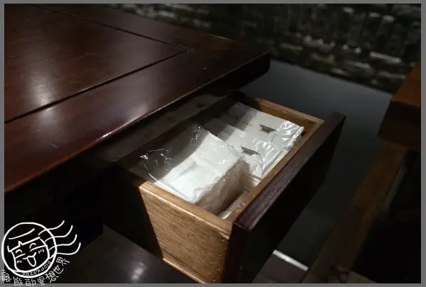 紙巾都放在抽屜喔,對我這種會吃得到處都是的人蠻貼心的XD!