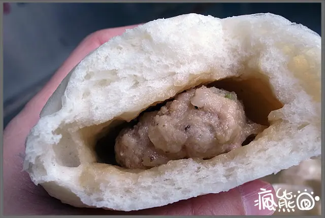 不一會就送來個白胖胖的肉包了,疑...沒有我想像中的大(哈~塊頭挺一般的),那是貴在餡囉?!