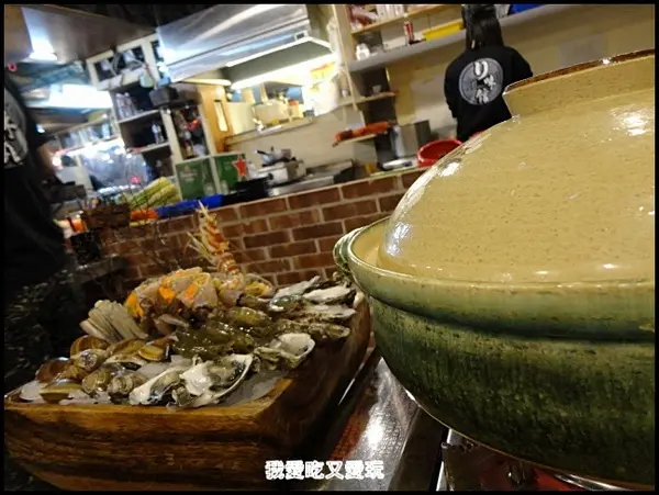 在吧檯前的坐位面對的都是滿滿的大蝦大蛤蜊大生蚵,這種畫面還真讓人大大的窒息