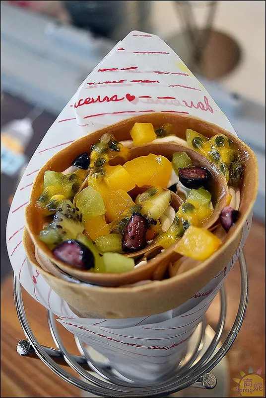 日式可麗餅跟平常吃到的可麗餅口感差很多,使用日本的薄力粉做成餅皮,屬於比較Q軟的口感