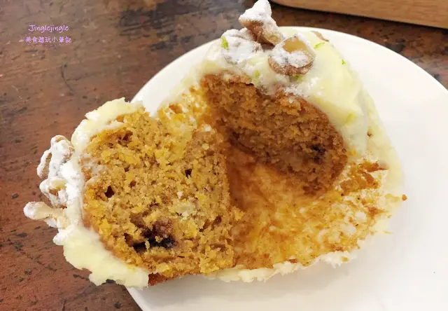 上層有一點糖霜跟核桃還有些許檸檬皮,可以吃到檸檬的清香,基本上糖霜的加入不會過甜