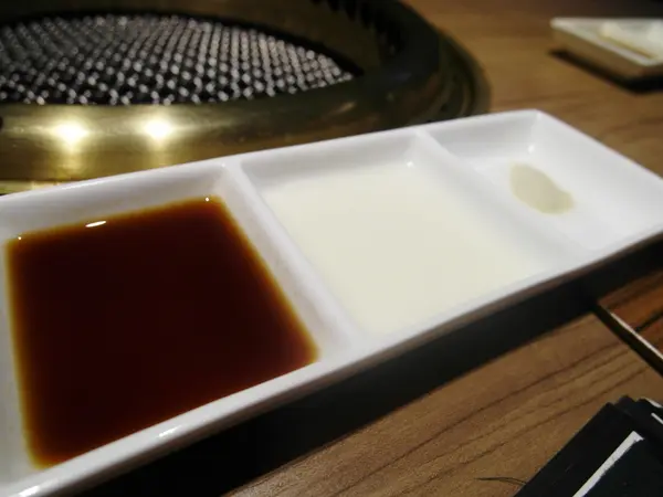 從左到右是 燒肉醬 檸檬汁 胡椒鹽
