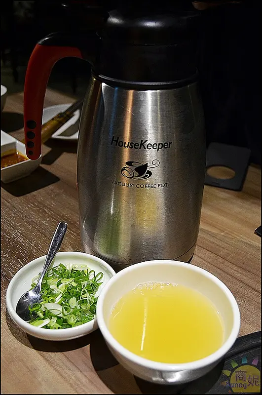 首先上桌的是燒肉店都會有的喝到飽雞湯,需要蔥花可以跟服務生要
