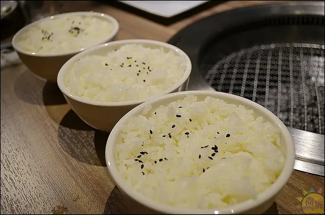 這越光米香Q好吃,配燒肉或是等一下的黃金泡菜、義式洋蔥都很可口,不知不覺吃光光,真的會吃得很飽