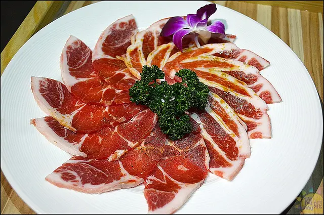 吃燒肉比較少見櫻桃鴨,服務生特別來示範說最好吃的熟度是在七八分熟