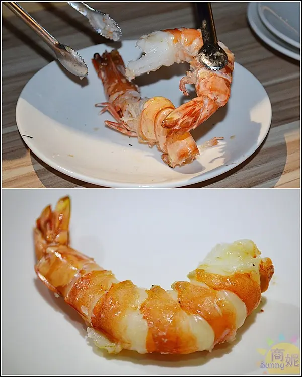 烤好服務生會直接以夾子幫客人剝好蝦殼裝盤服務到位,第一次吃蝦完全不費力不沾手好輕鬆~