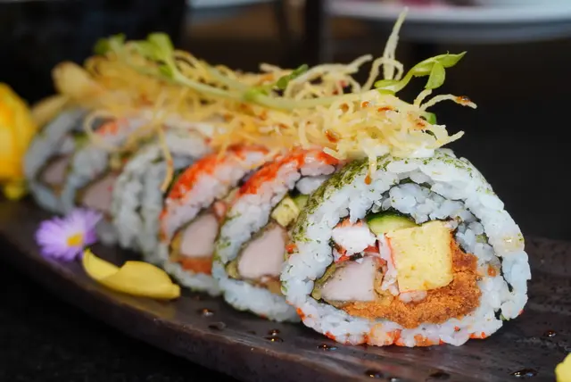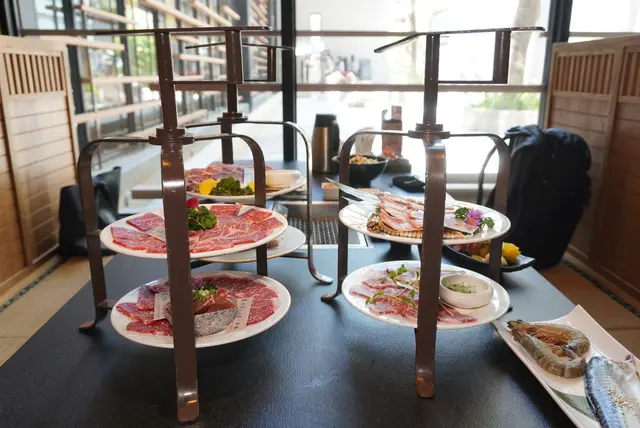 小菜、生菜沙拉、白飯升等壽司及甜點、飲料