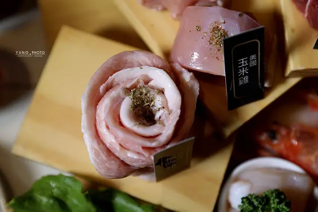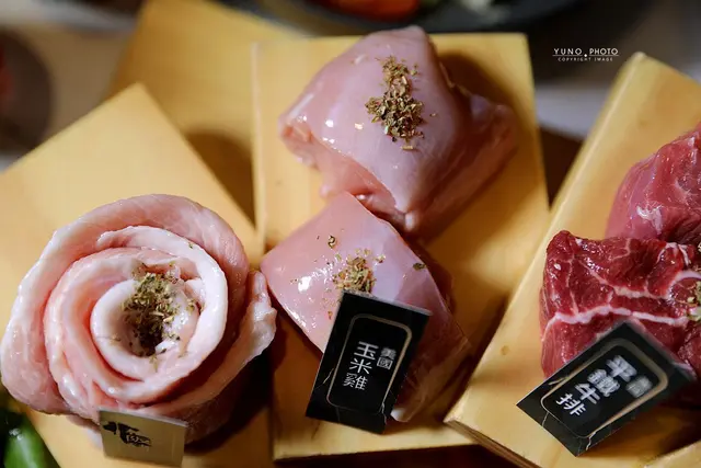 不僅牛肉美味 豬肉和雞肉也讓人驚艷 松阪豬的Q彈口感十分涮嘴 簡單沾上些許玫瑰鹽 就能品嚐到肉質的鮮美和彈牙的絕佳口感