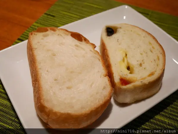 麵包有兩款,一個是我喜歡的酥脆口感法國麵包,另一個則是比較柔軟的橄欖起司風乾番茄麵包,他們家的麵包也極為美味,吃不夠也還可以續,我是一定會續的,我最近已經有點自暴自棄狂吃了