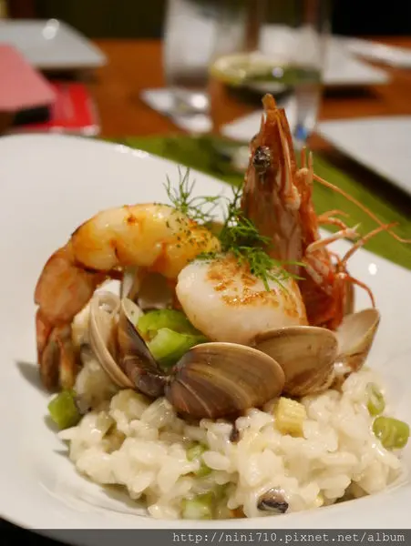 直到我今天又嚐了這道檸香明蝦干貝海鮮燉飯,跟松露風味野菇松子燉飯一樣是驚為天人的好吃,這海鮮飯透著鮮與甜,爽口美味,吃再多也不膩,真的非常推薦一定要點的一道燉飯