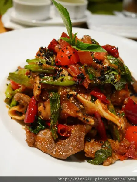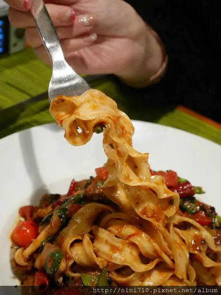 香蒜辣椒牛小排關廟麵,捨棄用一般的義大利麵,反而用了中式風味的關廟麵,這是一道香辣可口帶著中式快炒氣息的麵點,那牛肉不知主廚怎麼弄了,怎麼可以滑嫩嫩到那種誠度,番茄加上金針口味意外的搭