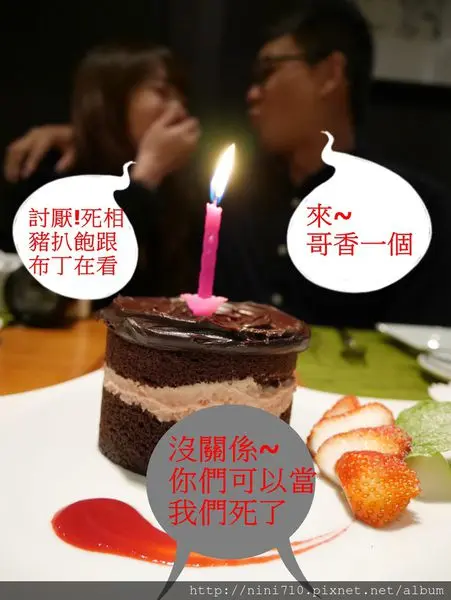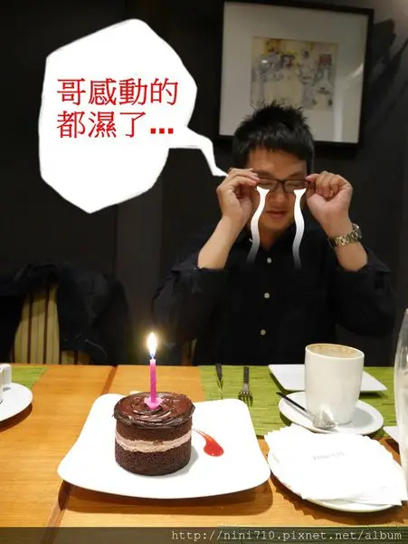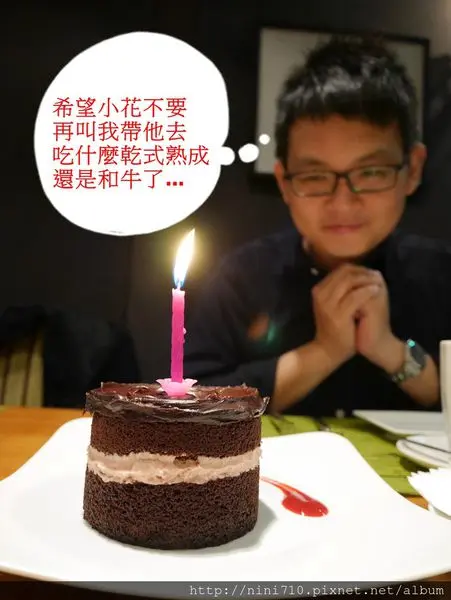 酒足飯飽後,小花拿出了要幫Kimi哥慶生的蛋糕(咦?怎麼只剩蛋糕?我記得小花說要送Kimi哥價值兩萬的名錶啊?