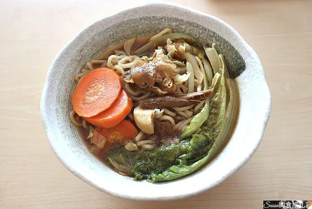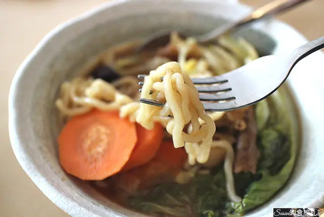 一碗麵點配上美生菜、紅蘿蔔、杏孢菇和鴻喜菇真的蠻豐富的