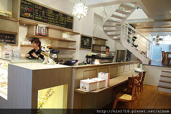 繞著白色的旋轉樓梯到二樓就可以看到一間很大間的透明烘培室,這些可愛的不得了的蛋糕就是從這裡來的
