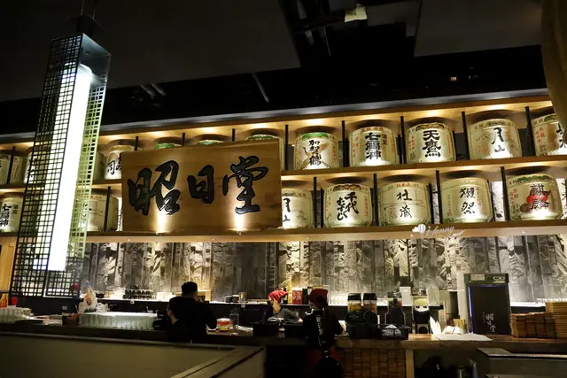 在昭日堂燒肉餐廳底部設置了吧檯,將日本的大型酒樽當做裝飾,加上店名的扁額,更顯壯觀
